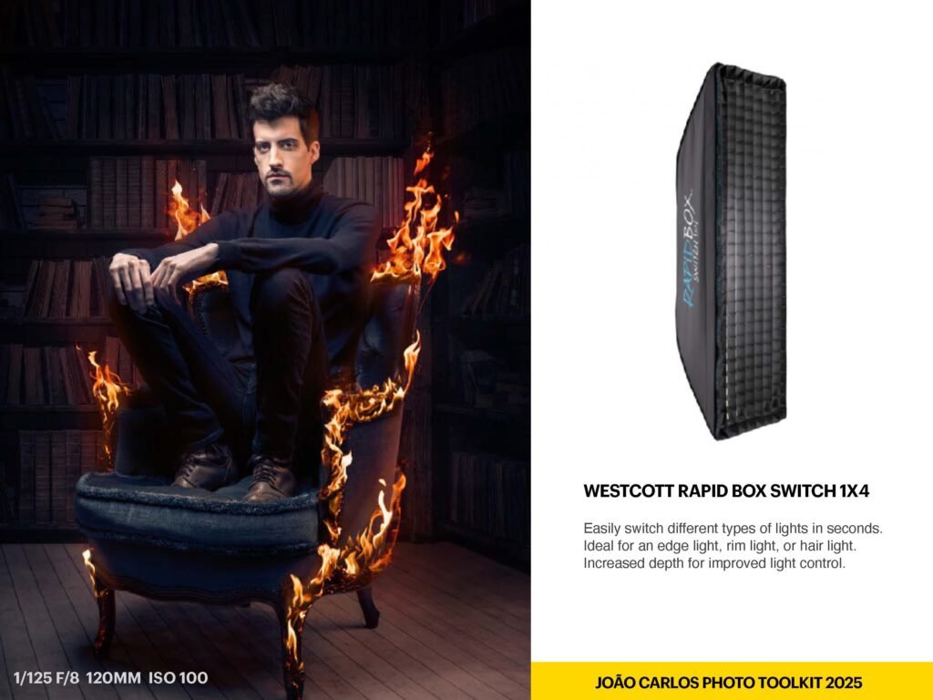 This is my go-to when I need a strong edge or kicker light. The long, narrow shape is perfect for sculpting form and separation — a studio essential.