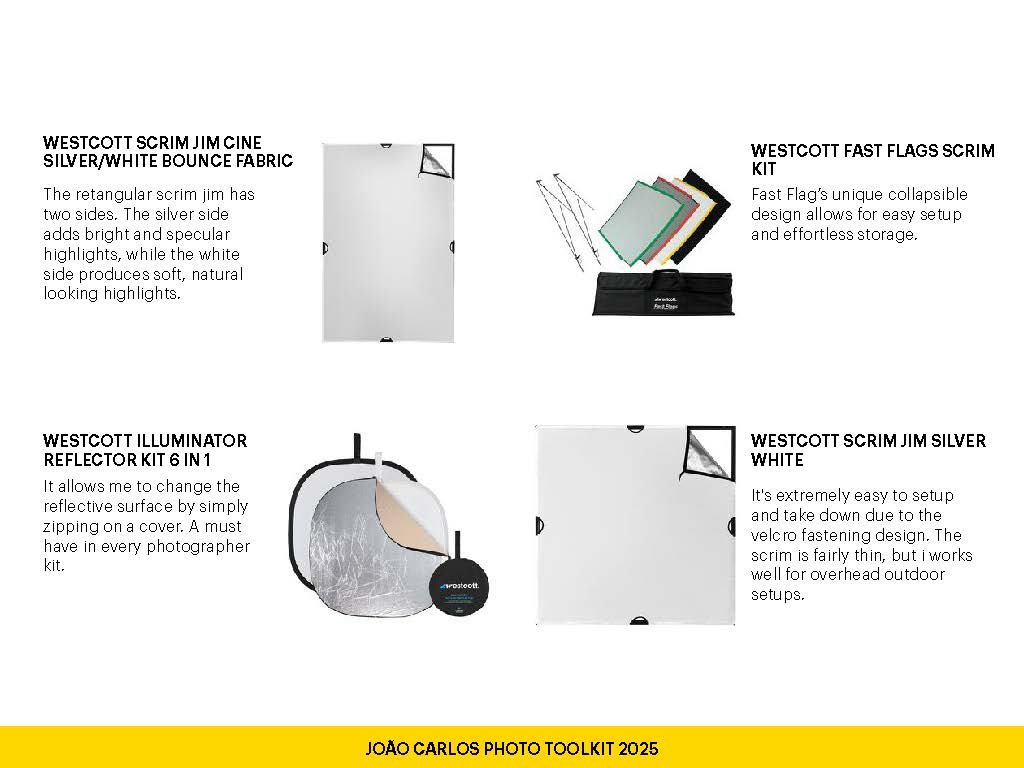In this section, I’ll walk you through the lighting tools I trust—from Profoto flashes to Westcott reflectors and scrims. Let’s start with the unsung heroes of lighting: reflectors.