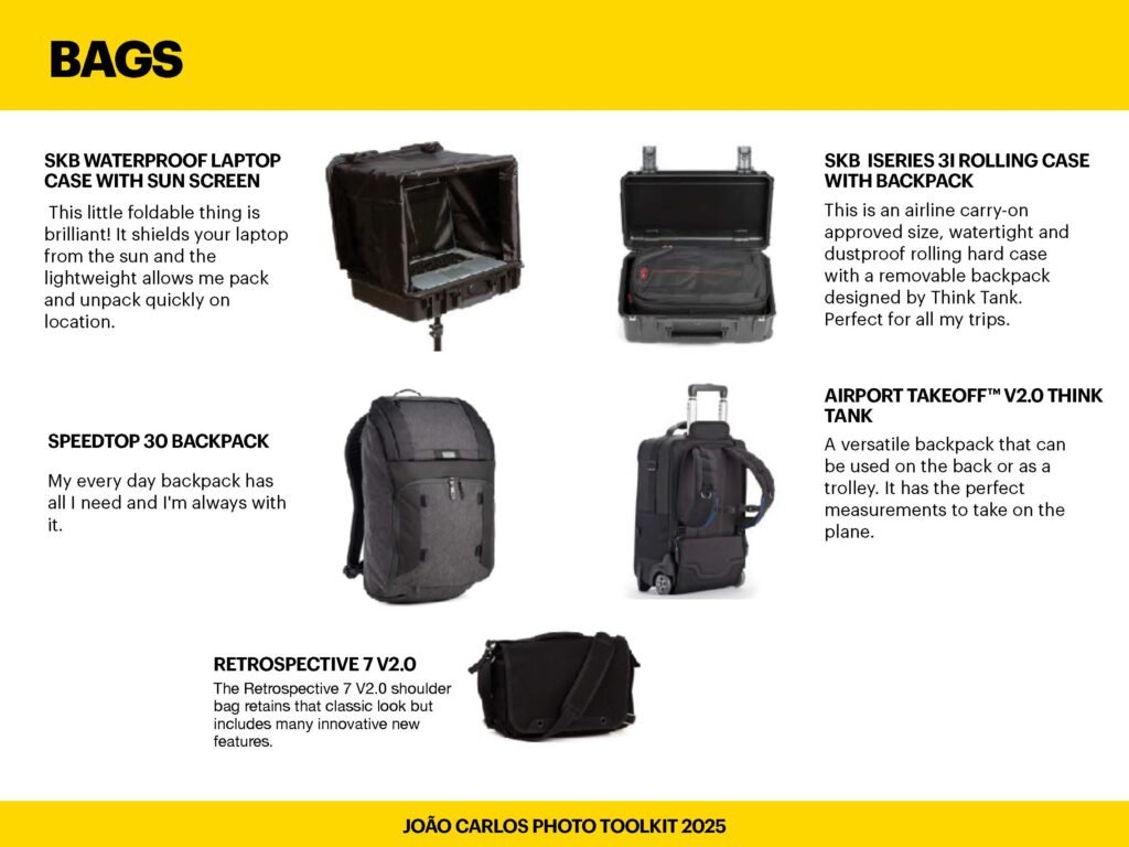 As a Think Tank Photo ambassador, I’ve tested just about every bag they make—and I keep coming back to the same few because they just work. Whether I’m heading out for a location shoot or flying internationally with a full kit, Think Tank has a solution that fits the way I move. From the Airport International V3.0, which protects my gear like a tank (pun intended), to the Retrospective Backpack, which blends in when I’m working street-style or on personal projects—these bags are smart, durable, and made for real working creatives.